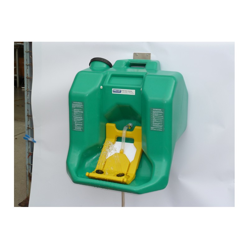 A secure and cost effective solution for an eyewash station where plumbed water is not available.