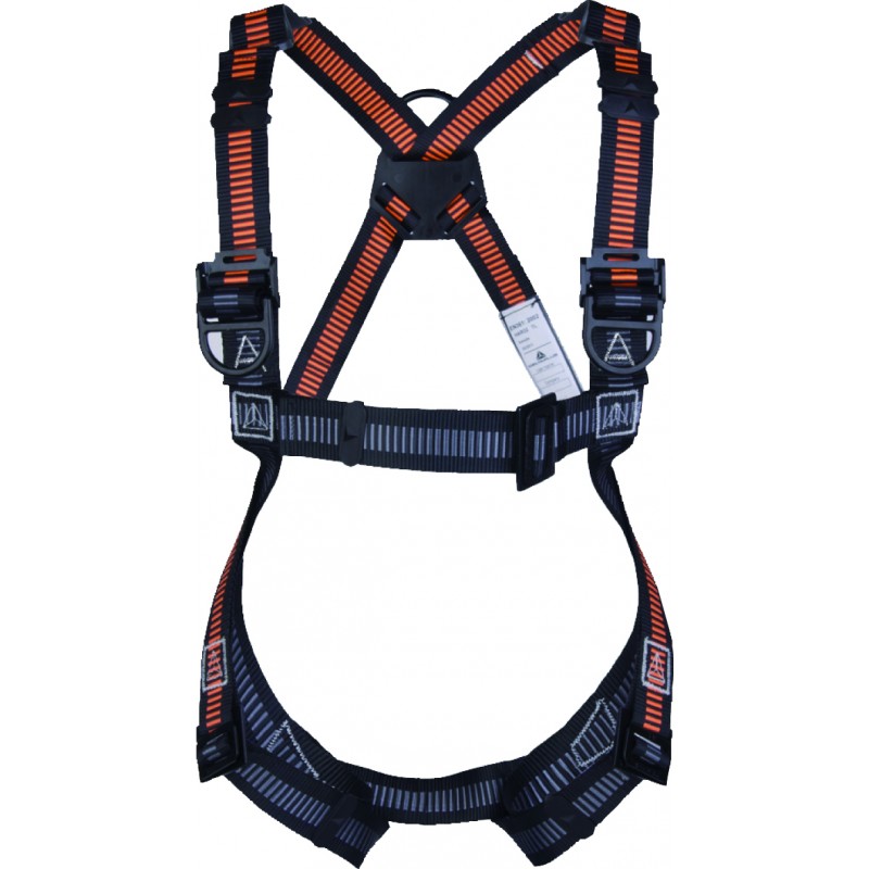 Elasticated harness with extensible "Riplight System II ®" patented waves. 3 fall arrester attachment points (back- right front side - left front side). 4 adjustable buckles.